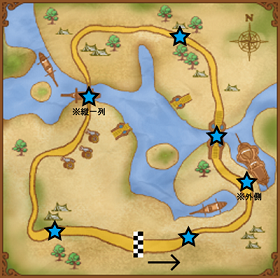 各コースの星印のアイコンが落ちている位置は、下記画像を参考に。