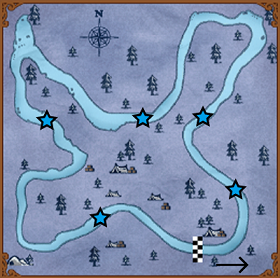 | 聖なる森コース | 年中凍りついている森林。凍てつく雪に覆われた大地は聖なる女性のように白い。 雪に覆われた果てしないこの地は視界が悪い。操縦に気をつけろ! |