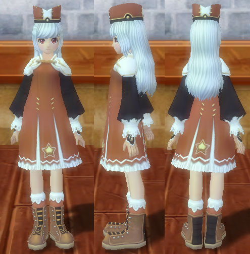 | 入手方法アンティカの交換商人・裁縫Lv7で生産可能な装備 男画像はローブのみになってます。 男の頭手靴アリの画像を入手した方画像更新してください。 | |||