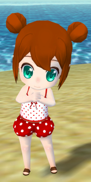 | 2点セット。(2013/07/24追加) 「2013水着ガチャ・C」ガチャからキッズ水着上・下(赤)キッズ水着下(青)の3種類が全部出る。 (2014/07/16)<海の日>ガチャから出る<キッズ>BOXから3種類の内いずれかの1つが出る。 | ||||||
