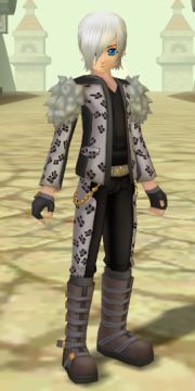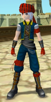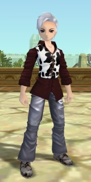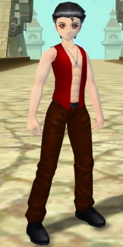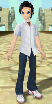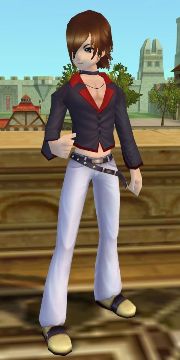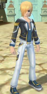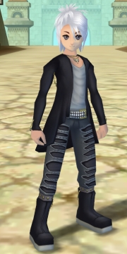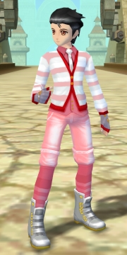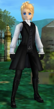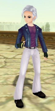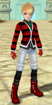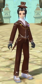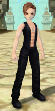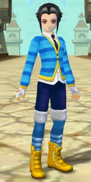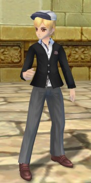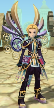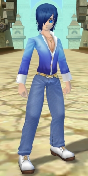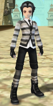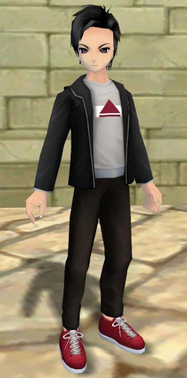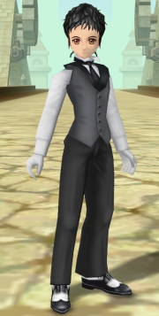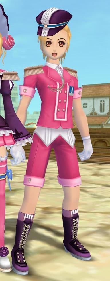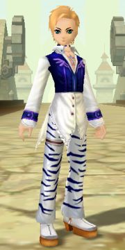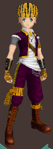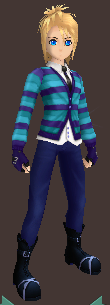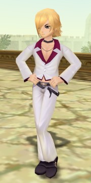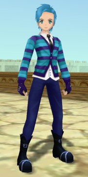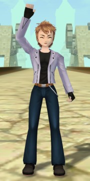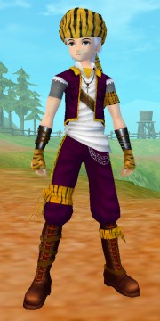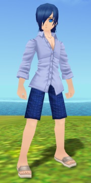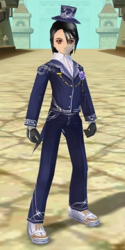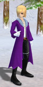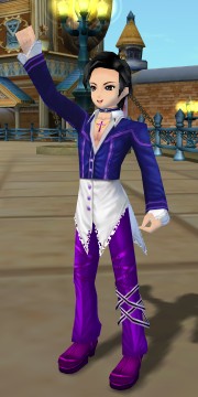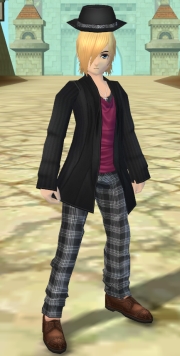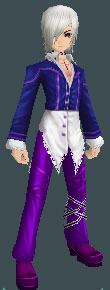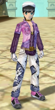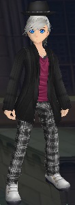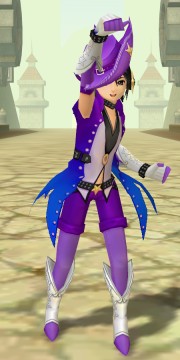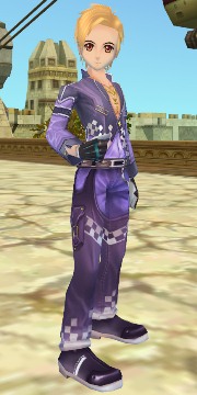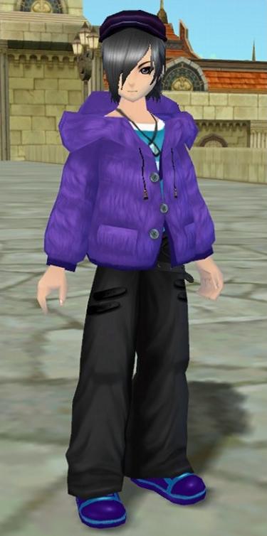 | 紫ペアルック衣装の3点セット。(2009/4/14追加) 初心者交流イベント【LH友の会】でアバター装備の練習用に配布されたアバター。 着替えガチャ♂(2010/4/8~4/14まで販売)から無期限版がバラで出た。 | ||||||