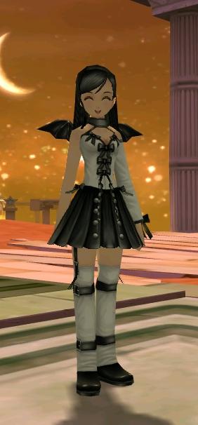 | 小悪魔風の小さな漆黒の羽が付いた魅惑的な衣装の4点セット。(2008/09/19 追加) (無期限版:2008/09/19~09/30、2009/3/10~3/15まで特価販売510GASH、ハンゲーム登場記念キャンペーン賞品) 年末アバターゲットキャンペーン(2009/12/14 16:00 ~ 12/28 15:59) の期間中に、500GASHポイント以上チャージしアイテムモールを利用した人全員に配布。 | ||||||