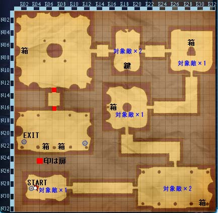 | 備考 | 2種類の鍵が出る 扉が2種類あるため? 証の箱は2箇所でランダムの可能性あり? 調査時真ん中上の部屋箱が空き箱 |